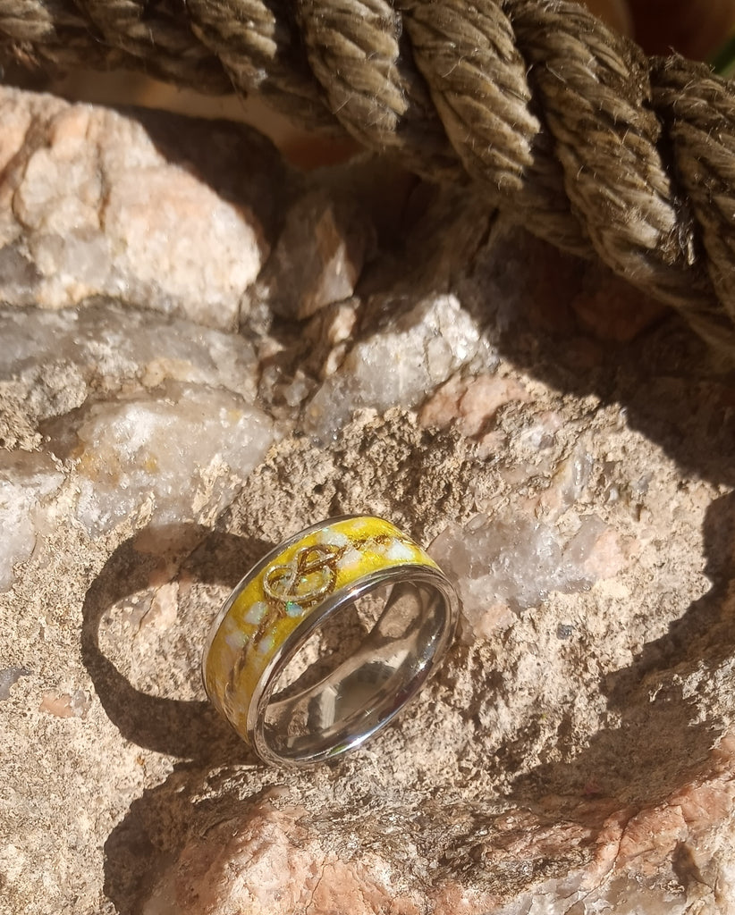 Casual Hand-Crafted Stainless Steel Ring Bands, tailored perfectly for your unique style and taste. This charming design features a soft Yellow Ring, inspired by the beauty of a "Sunflower", adding a delicate and artistic touch. Available in both 8mm and 6mm ring widths, you can choose the perfect fit for your comfort and preference.